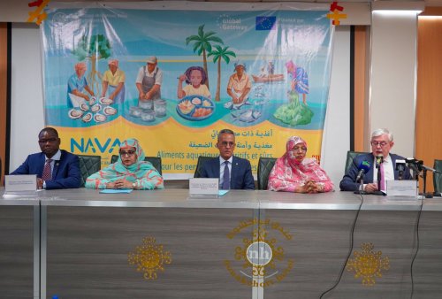 أشرف معالي وزير الصيد والبنى التحتية البحرية والمينائية، السيد المختار أحمد بوسيف، صباح اليوم الثلاثاء 18 نوفمبر 2025، بفندق بنواكشوط، على انطلاق أعمال الورشة الخاصة بمشروع “سلاسل القيمة المائية الجديدة من أجل تغذية صحية ومستدامة” (NAVAC).